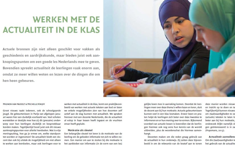 In het Levende Talen Magazine (juni 2015) is een artikel verschenen waarin de voordelen van het werken met de actualiteit in de les worden beschreven, aangevuld met een praktijkvoorbeeld en lestips.
