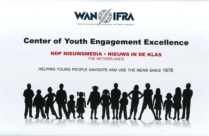Nieuws in de klas heeft het predicaat ‘WAN-IFRA Center of Youth Engagement Excellence’ ontvangen vanwege het innovatieve programma dat er voor zorgt dat jongeren actief kennismaken met het nieuws.